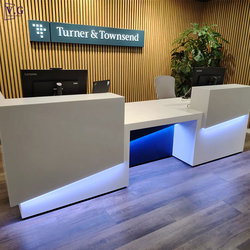 Empfangstheke für Medizinische Kliniken für 2 Personen Weiße Corian-Klinik-Empfangstheke Executive-Empfangstheke