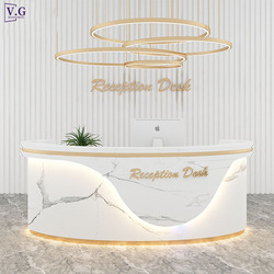 Customized Reception Desk Furniture Golden Small Curved Artificial Marble Reception Desk Half Circle Reception Desk