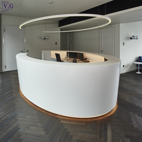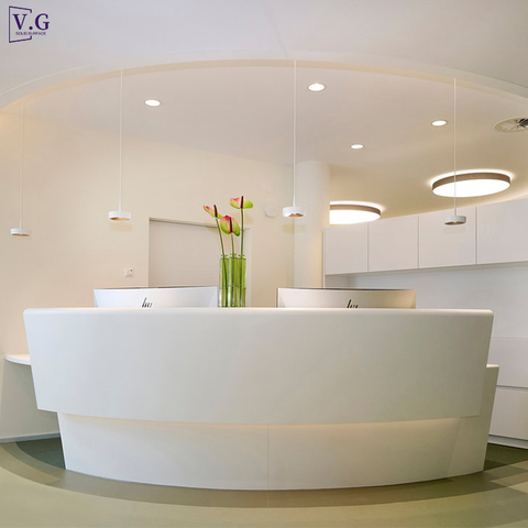 オーダーメイドの白い固体表面受付カウンタークリニック楕円形のカウンターホテル受付デザイン