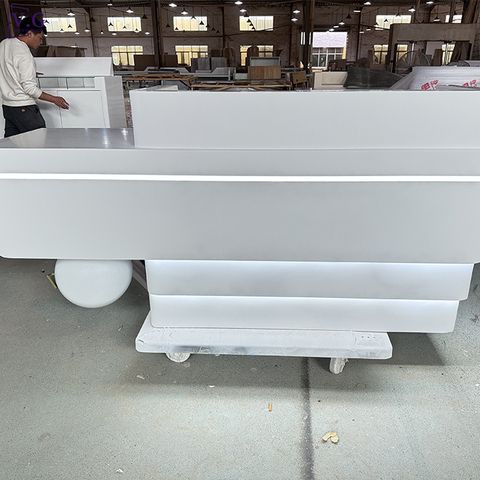モダンホワイトCorianフロントデスク重いフロントデスクカウンター店舗用耐久性オフィス用受付カウンター