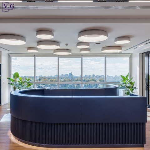 青い受付カウンター、カスタマイズされた大型受付ソファ、カウンター付きオフィス受付デスクシートデザイン