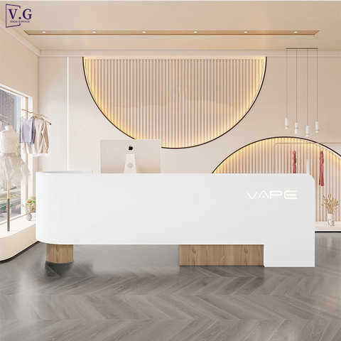 モダンな木製レセプションテーブル木製レセプションカウンターホワイトファンシーレセプションデスクドアへの配達